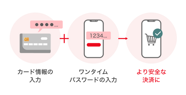 サービスにご登録いただくと、カード決済時に通常のカード情報に加え、弊社からお届けするSMSに記載の「ワンタイムパスワード」の入力が必要になるため、セキュリティ強化に繋がります。