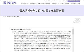 PiTaPaに関する個人情報の取り扱いに関する重要事項です。