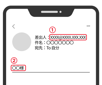 以下①②をご確認いただき、すべて当てはまる場合は弊社からお送りしているメールとご判断ください。
