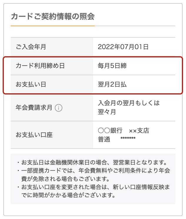 お支払い日・締め日・ご利用代金のお引き落とし