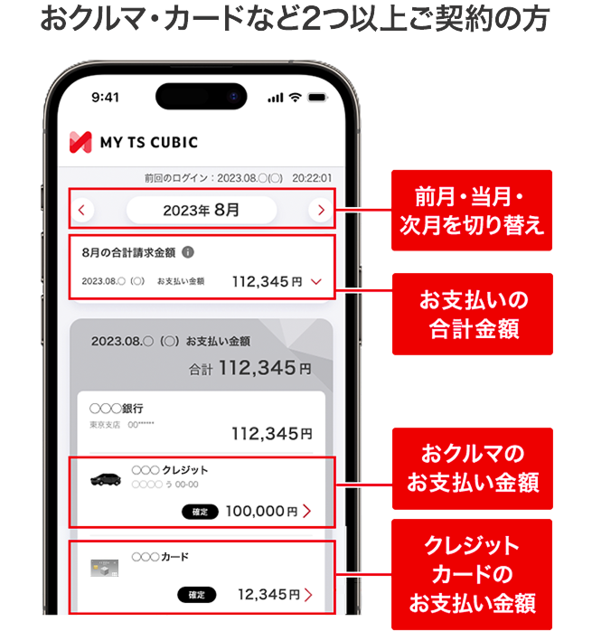MY TS CUBICにて、各月のお支払いが完了しているかどうかご確認いただけます。