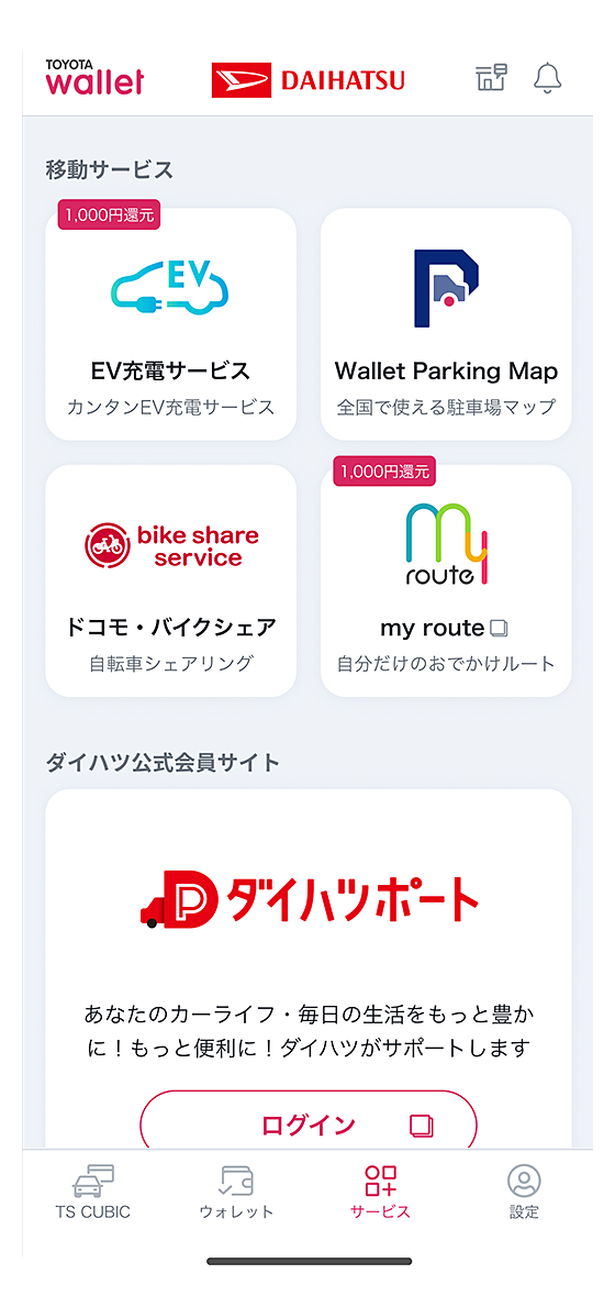 - ※DAIHATSU TS CUBIC CARDを設定することで、日常的にポイントも貯まります。