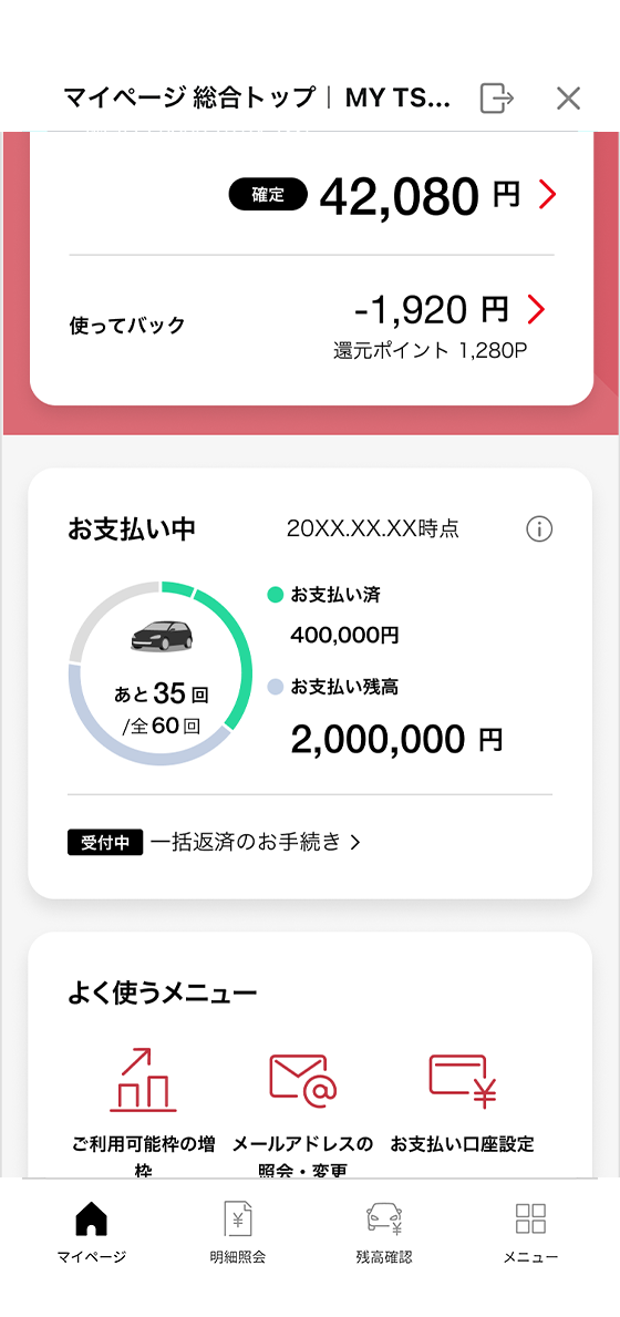 ご契約後のお支払い状況の確認や毎月のお支払い金額の変更等も可能です。