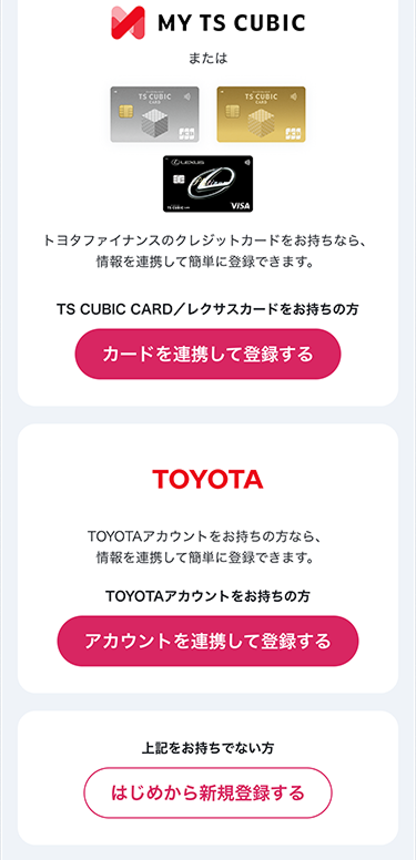 また、MY TS CUBIC IDをお持ちでない方は、TOYOTA Wallet IDのお客さま情報に合わせて登録します。