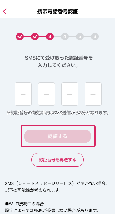 1 - 4 携帯電話番号の認証を行います