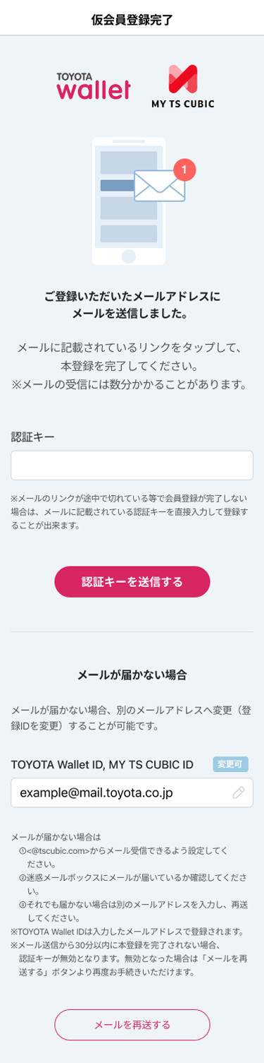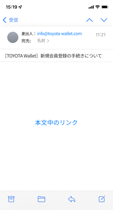 件名:[TOYOTA Wallet]新規会員登録の手続きについて
