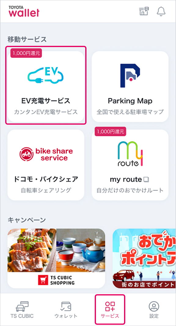 - ・ご利用いただくためにはTOYOTA Walletアプリで以下のいずれかの決済サービスの設定が必要です。