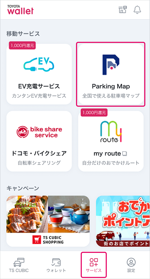 - ・「軒先パーキング」/「akippa」のご利用にはTOYOTA Walletでのお支払いはできません。