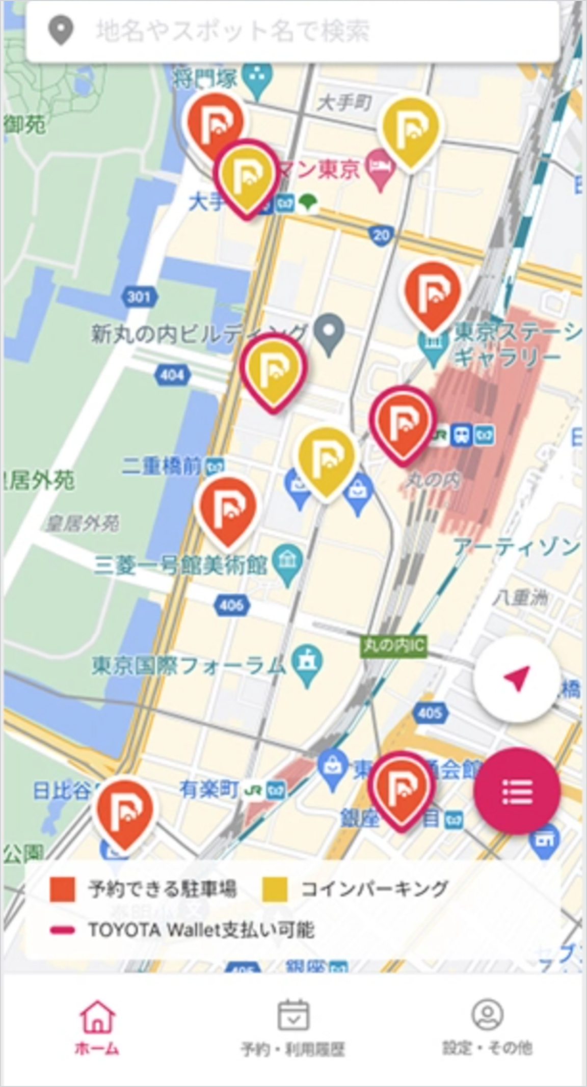 - ・コインパーキングやシェアパーキング(予約できる駐車場)の検索