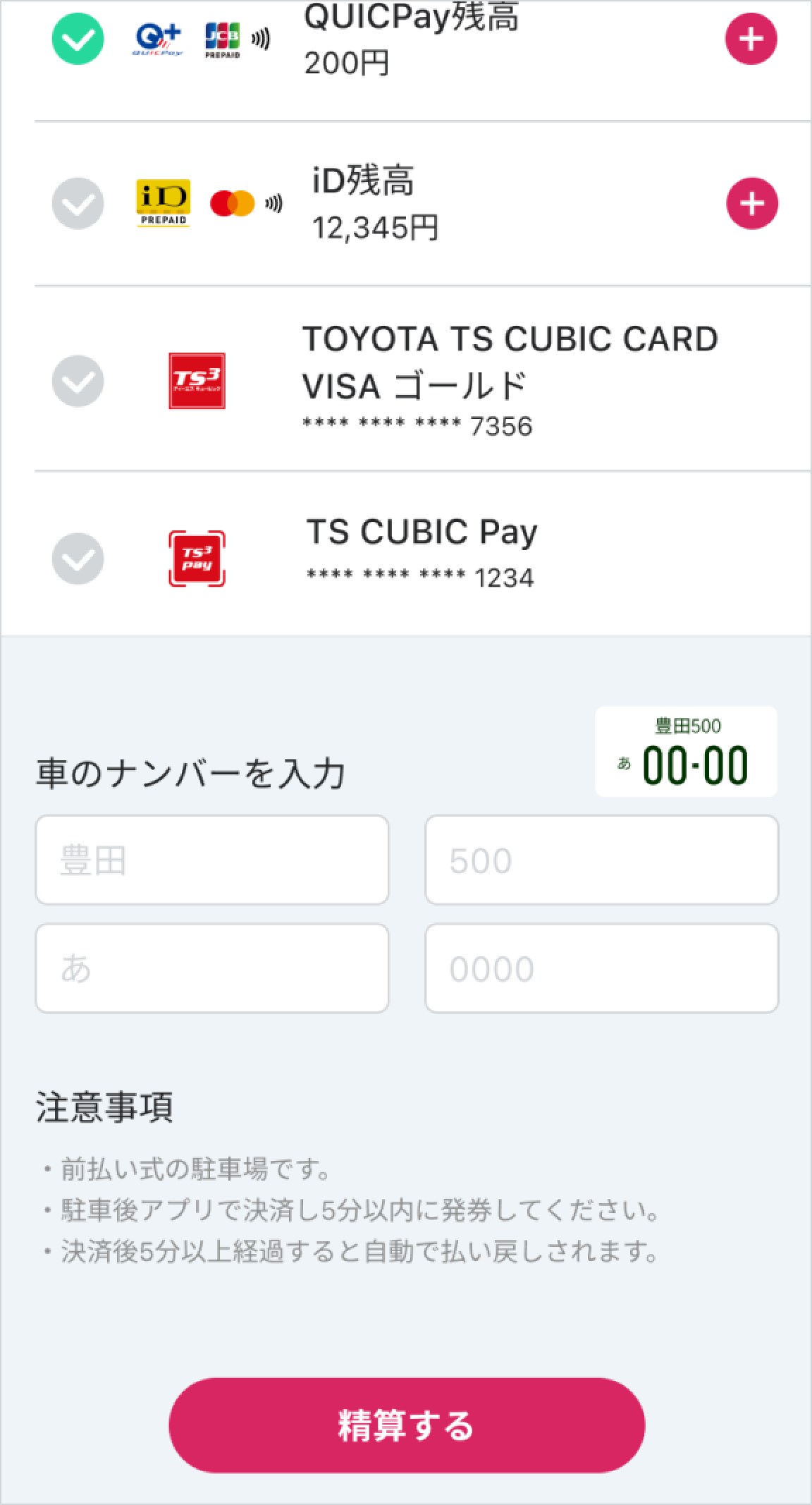 - ・お支払い方法は、TOYOTA Walletに登録済の以下がご利用いただけます。