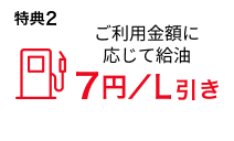 特典2 毎月のカードご利用金額に応じてガソリン・軽油が最大7円/L引き