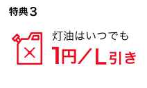 カードご利用金額に関わらず、いつでも灯油が1Lあたり1円キャッシュバックされます。
