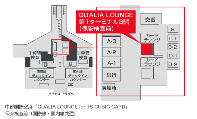 - 「QUALIA LOUNGE」は、TS CUBIC CARDゴールド会員さまおよびレクサスカード会員さまがご利用いただける専用ラウンジです。